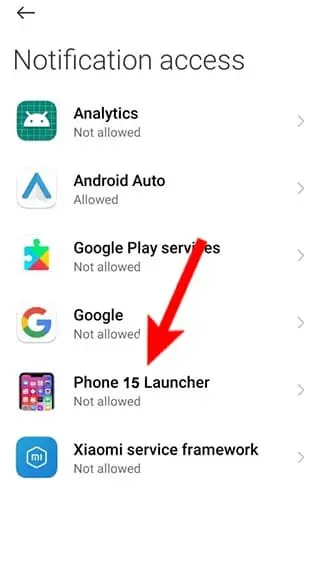- अब आपको Notification access को Agree करना है तो इसके लिए Phone 15 Launcher पर क्लिक करे और Notification access को ON कर दे।
