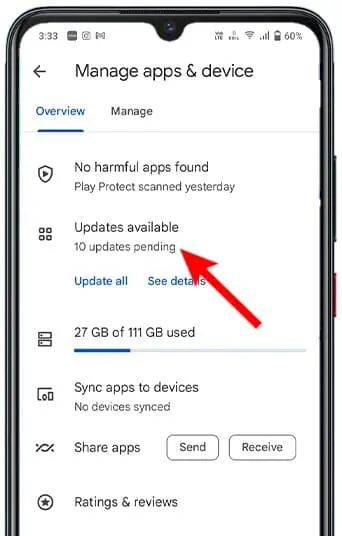 - इसके बाद आपको Updates available के ऑप्शन पर click करना है।