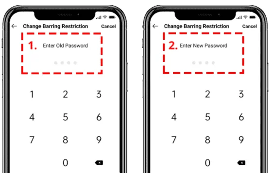 - सबसे पहले आपको अपना call barring का पुराना यानि default password डालना होगा। अब उसके बाद आपको नया password डालना होगा इसके लिए आप कोई भी 4-digit का नया password डाल सकते हैं। एक बार नया password डालने के बाद आपको एक बार दुबारा verification करने के लिए same वही password डालना होगा। ऐसा करने के बाद आपका कॉल बर्रिंग का password change हो जाएगा।