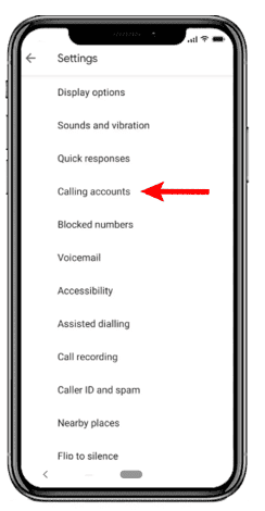 - Settings के ऑप्शन पर click करने के बाद आपके सामने बहुत सारे options आएगे जिनमे से आपको Calling accounts के ऑप्शन पर click करना है।