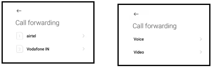 - जब आप किसी एक सिम कार्ड पर click करते है तो यह आपसे पूछेगा कि आप Video या Voice किस Call Forwarding सेटिंग को open करना चाहते है, तो यहाँ आप किसी एक पर क्लिक कर सकते है।