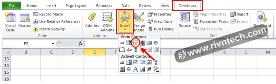 अब एक्सेल में चेकबॉक्स को insert करने के लिए आपको Developer Tab पर क्लिक करना है, इसके बाद Insert पर क्लिक करके Check Box पर क्लिक करना है।