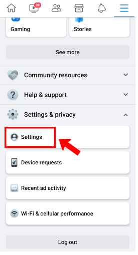 - अब नीचे स्क्रॉल करके Settings & Privacy के ऑप्शन पर click करे और इसके बाद Settings के ऑप्शन पर click करे।