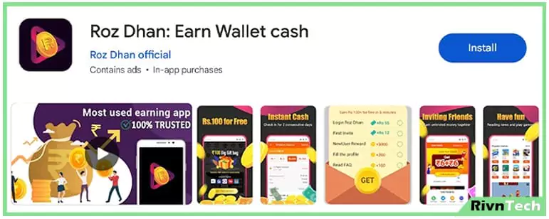 Roz Dhan एक ऐसा Free Fire में हीरा लेने वाला App है जिसे अगर आप daily open करते है तो आपको reward के तौर पर coins है जो पैसे में बदल जाते है।