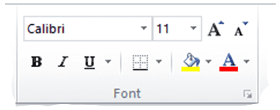 इस option की सहायता से एक्सेल में select किए गए text के बैकग्राउंड में कलर कर सकते है। Excel में cells को अलग दिखाने के लिए उनके background पर color apply करने और किसी important cell को highlight करने के लिए Fill Color का उपयोग कर सकते है।