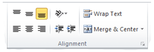 इसका उपयोग cell में टाइप किए गए अक्षरों को cell के top position में सेट करने के लिए किया जाता है। इस option पर क्लिक करने पर select किया गया text उसकी cell के top में align हो जाएगा।