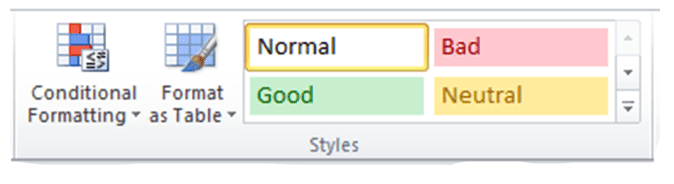 इस ऑप्शन में आपको cells के लिए पहले से बने कुछ styles मिल जाते है। इस विकल्प की सहायता से cells में अलग-अलग colorful styles, cell shading, borders और अन्य formatting Styles लागू कर सकते है।