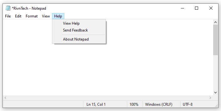 Notepad के Help Menu पर जाने के लिए आप Keyboard से ALT + H Key भी दबा सकते है और इसके अलावा आप Mouse के द्वारा भी जा सकते है। Notepad के Help Menu पर क्लिक करने पर आपके सामने Help Menu खुल जाता है।