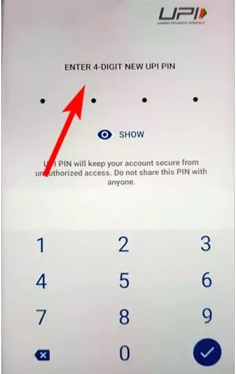 - अब इसके बाद Enter 4 Digit New UPI PIN में आपको अपना नया UPI PIN डालना और उसके बाद उस UPI PIN को कन्फर्म करने के लिए दोबारा उस PIN Number को डालना है इस प्रकार आपका UPI PIN Change हो जाएगा।