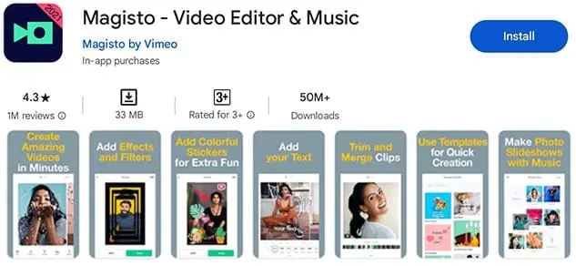 Magisto हमारी हमारी list में best photo se video banane wala app with song है। Magisto एक बेहतरीन वीडियो एडिटिंग ऐप है जिसमे आप बहुत लंबे वीडियो नहीं बना सकते लेकिन यह status, reels और short video बनाने के लिए सबसे अच्छा विकल्प है।