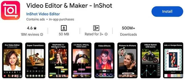 Inshot ऐप भी photo se video banane wala app की लिस्ट में सबसे ज्यादा पॉपुलर है। यह ऐप short video और collage create करने के लिए लोगो में काफी पॉपुलर है इस कारण ही इसे play store पर अब तक 500 million से अधिक लोगो ने डाउनलोड किया है।
