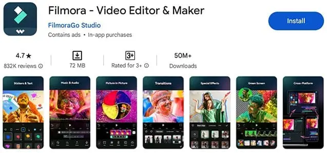 Filmora बहुत ही powerful photo se video banane wala app है जिसका इस्तेमाल करके आप एक Professional Video बना सकते है। इस app की मदद से आप photo से attractive video बना सकते है और साथ ही वीडियो को अपने अनुसार edit भी कर सकते है।