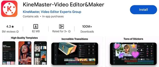 Kinemaster android phone के लिए सबसे अच्छा Photo से Video बनाने वाला Apps में से एक है। यह बहुत ही पॉपुलर video editing app है जिसका इस्तेमाल कई सारे youtuber भी कर रहे है। इस ऐप की मदद से आप एक professional video create कर सकते है और इस ऐप का इस्तेमाल आप फ्री में भी कर सकते है।