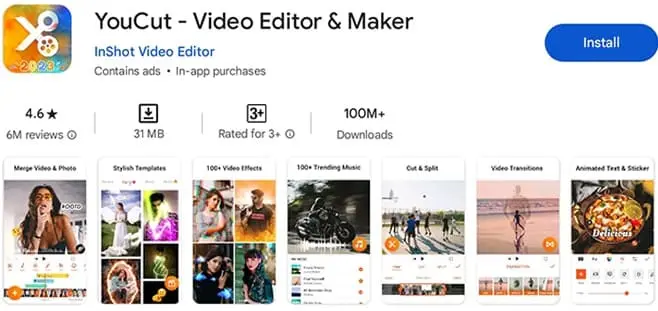 इस ऐप में बहुत सारे फीचर फ्री में मौजूद है जैसे – No Watermark, No ads, Video Merger & Video Joiner, Video Cutter & Video Trimmer, Video Splitter & Video Slicer, Video Speed Control, Photo Slideshow Maker, Filters & FX Effects आदि। YouCut app को आप प्ले स्टोर से फ्री में डाउनलोड कर सकते है।