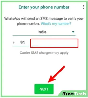 इसके बाद आपके सामने एक मोबाइल नंबर एंटर करने का ऑप्शन आए तो आपको वही मोबाइल नंबर एंटर करना है जिस पर आप whatsapp ID बनाना चाहते है। मोबाइल नंबर एंटर करने के बाद Next पर क्लिक कर देना है।