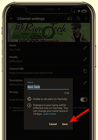 इस प्रकार आप आसानी से Mobile की मदद से YouTube Channel का नाम बदल सकते वो भी मिनटों में।